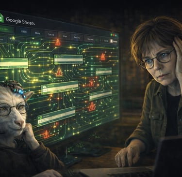 Debugging Apps Script is a psychological experience: logs that say nothing useful, triggers that claim they executed when they clearly did not, permissions that randomly expire, functions that behave differently depending on which tab you were looking at when you clicked the button. I began adding Logger statements everywhere โ more logs, more tests, more conditions. The scripts grew. So did my confusion. At some point I realised I was no longer writing tools. I was managing behaviour. The sheet had state. And state creates consequences.